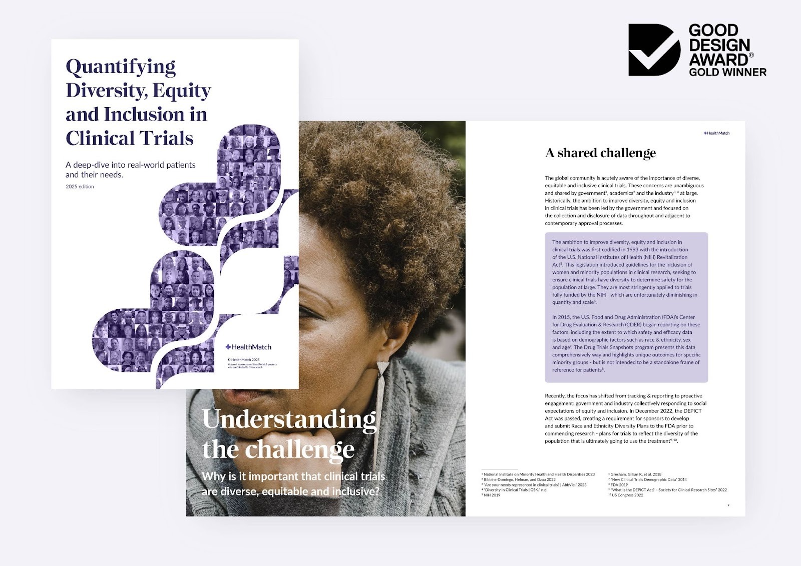 In collaboration with HealthMatch, the 'Quantifying Diversity, Equity and Inclusion in Clinical Trials' report series was recognised in the Social Impact category for its contribution to improving representation and inclusion in clinical research.